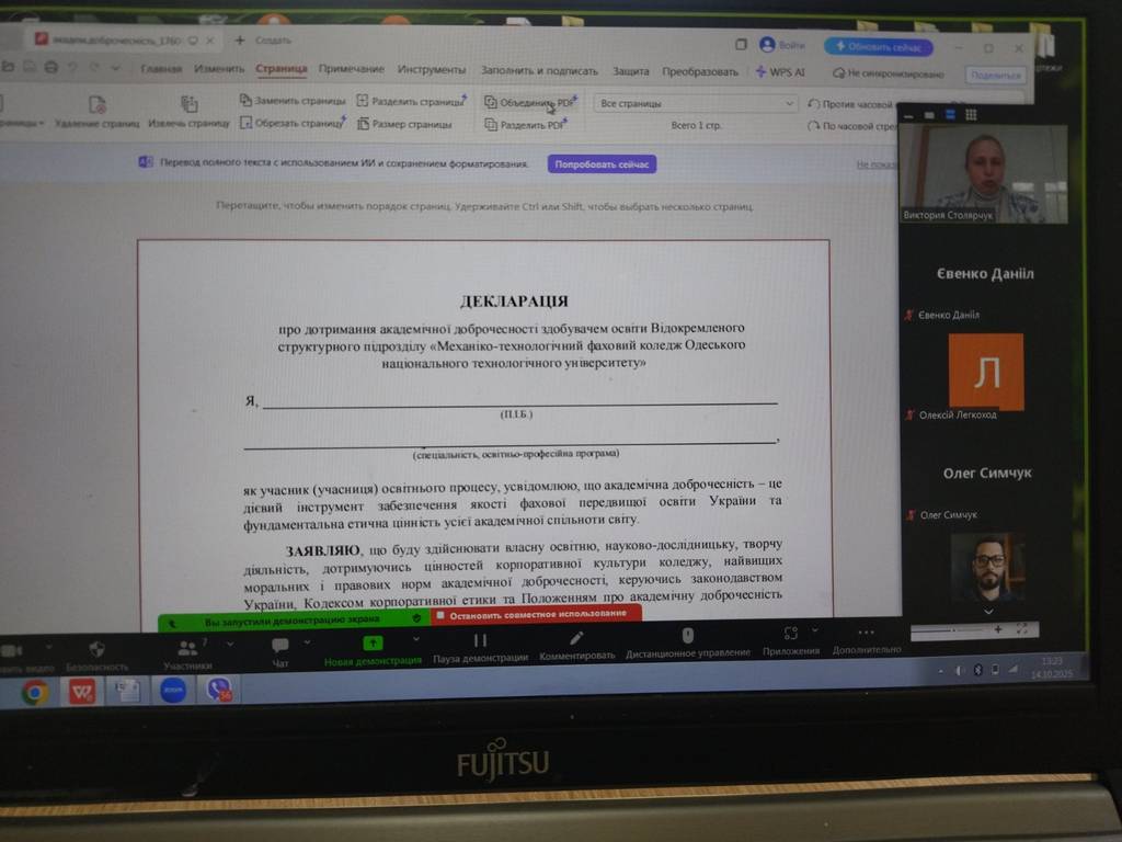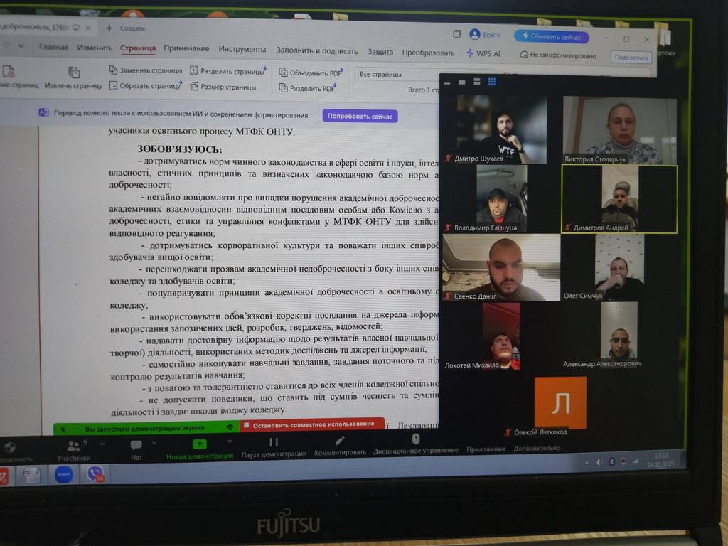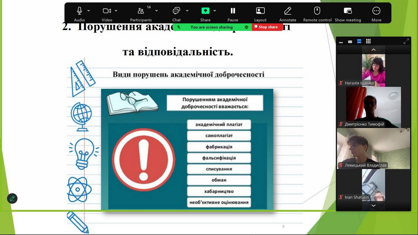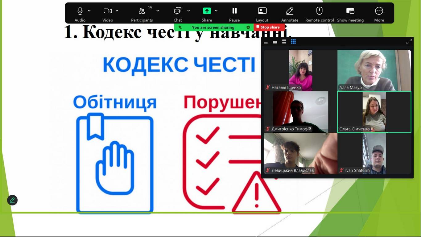 У рамках Тижня академічної доброчесності відбулася зустріч студентів та викладачів в актовій залі коледжу. Адміністрація та викладачі акцентували увагу на важливості дотримання академічної доброчесності для особистісного та професійного розвитку студентів. Учасники мали змогу поставити запитання та обговорити типові порушення, що трапляються в навчальному процесі.