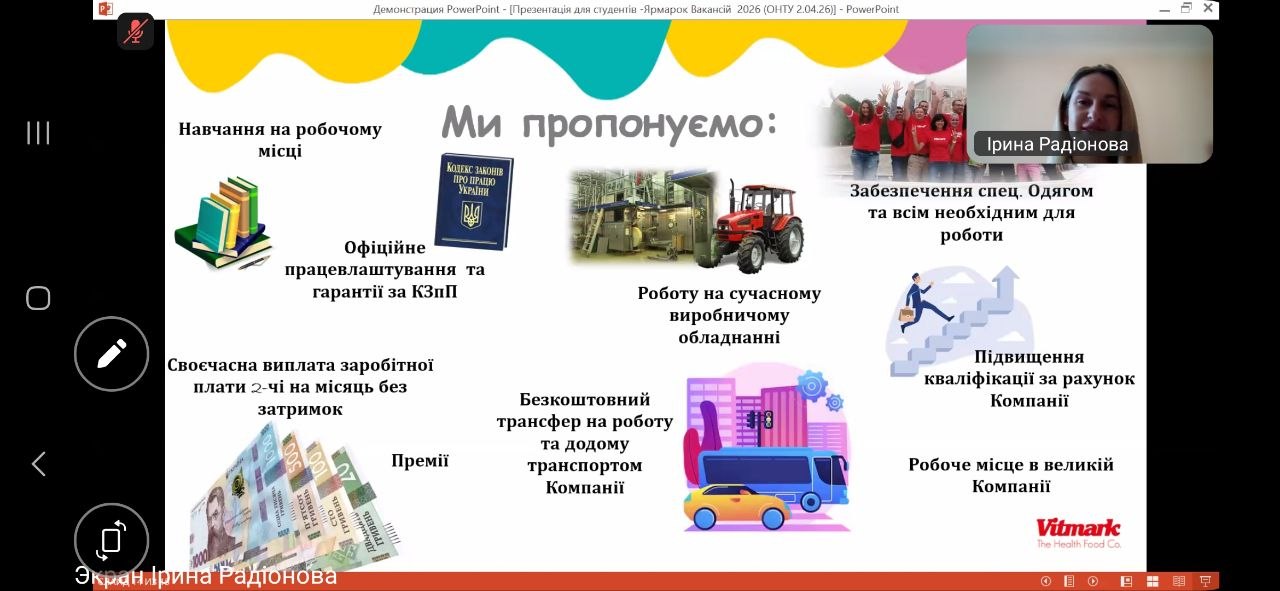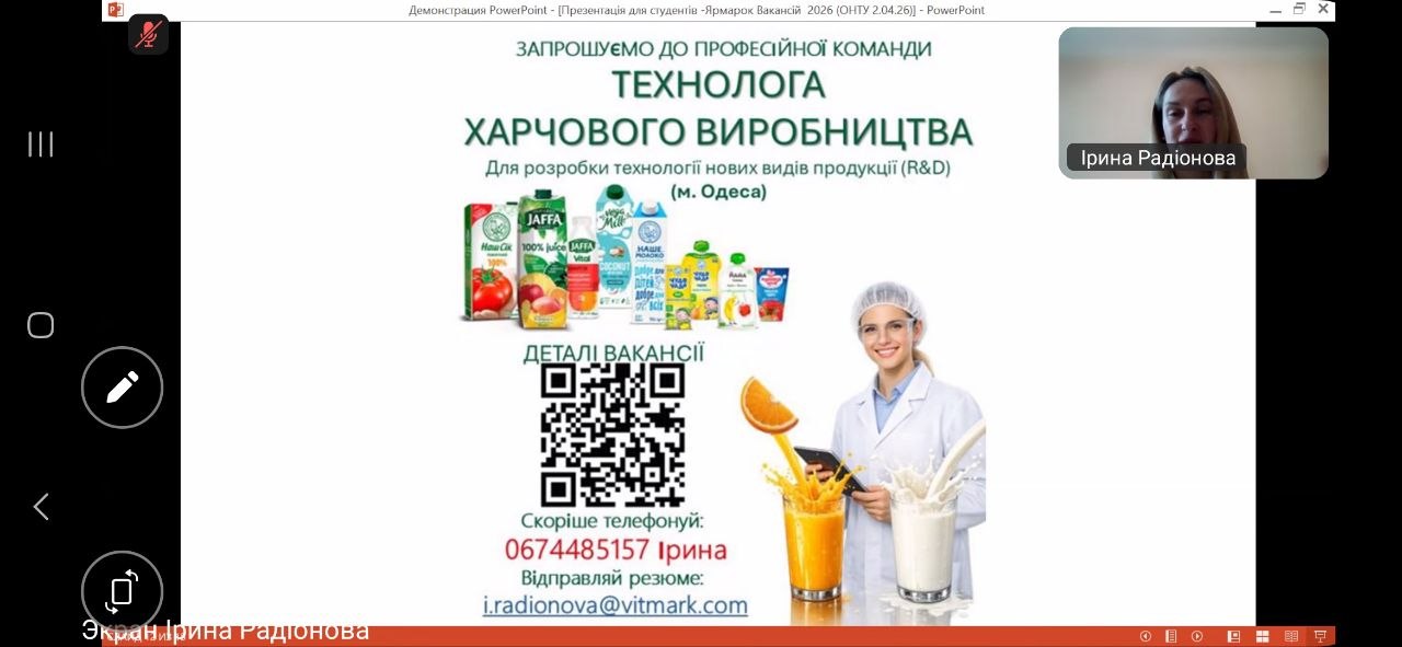 Студенти ВСП” Механіко-технологічний фаховий коледж ОНТУ” електромеханічного та технологічного відділень коледжу стали учасниками 43-го Ярмарку вакансій ОНТУ. Захід зібрав 22 провідних підприємства. Були представлені: Вітмарк, Дельта Вілмар Україна, KERNEL, ПрАТ “МХП”, Гормолзавод, Клуб сиру (КОМО) та інші.