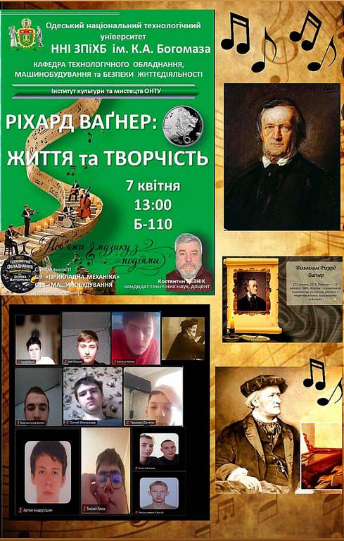 У ході заходу було детально висвітлено основні етапи життєвого шляху митця: від ранніх років і становлення його як композитора до періоду творчої зрілості, коли він створив свої найвідоміші опери. Студенти дізналися про непросту долю Вагнера, його пошуки нових форм у мистецтві та прагнення поєднати музику, драму й поезію в єдине ціле.