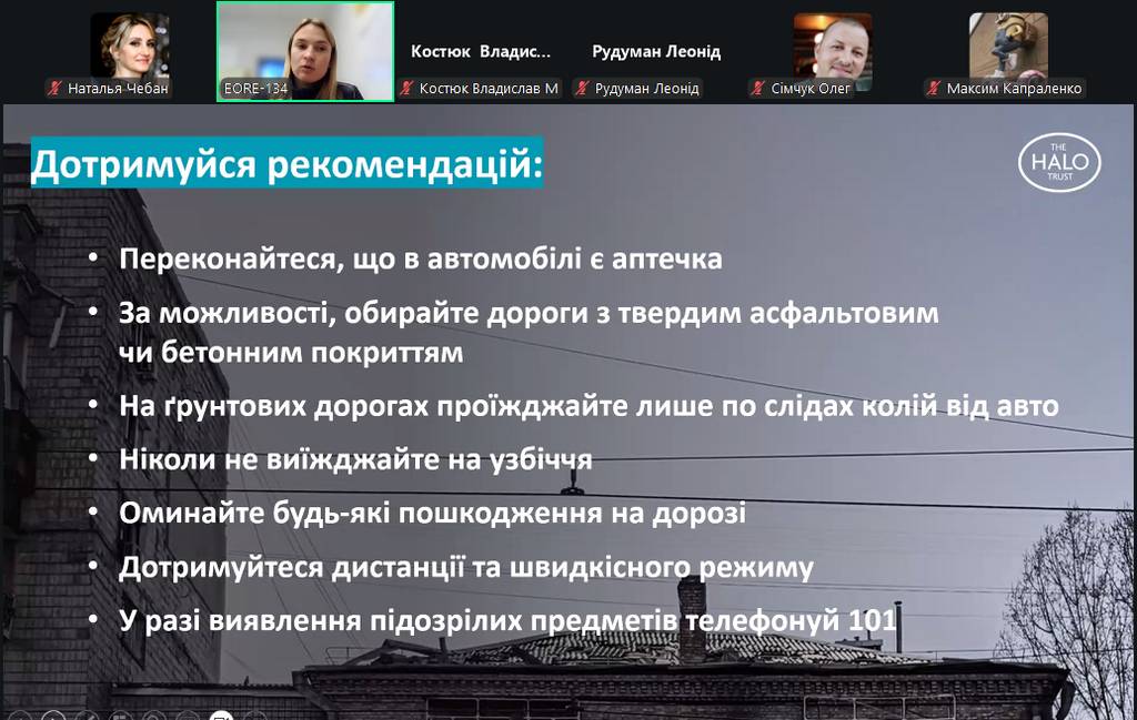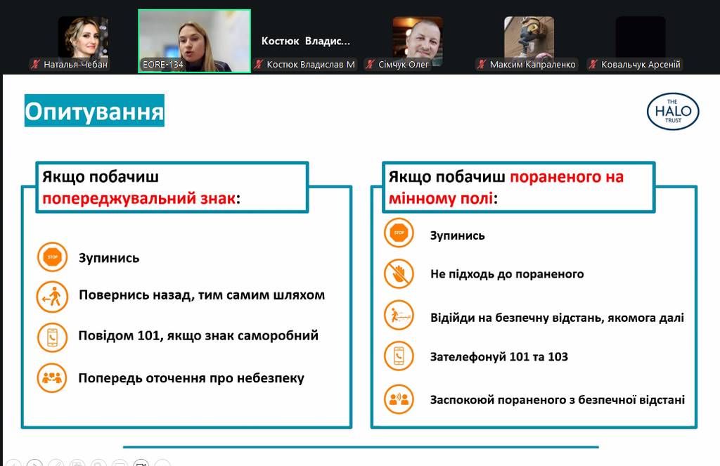 Представники The HALO Trust детально пояснили, як правильно діяти у разі виявлення підозрілих або небезпечних предметів, яких дій категорично не можна робити та до кого слід звертатися по допомогу. Студенти отримали чіткі та практичні алгоритми поведінки, що допомагають зменшити ризики та зберегти життя у складних реаліях сьогодення.