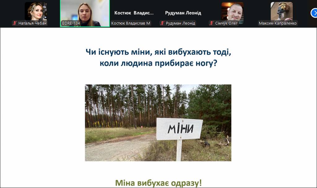 Під час бесіди учасники дізналися про основні види вибухонебезпечних предметів, які сьогодні можуть траплятися на території України, де саме вони найчастіше знаходяться та чому становлять серйозну загрозу для життя і здоров’я людей. Особливу увагу було приділено реальним прикладам з повсякденного життя, з якими може зіткнутися кожен.