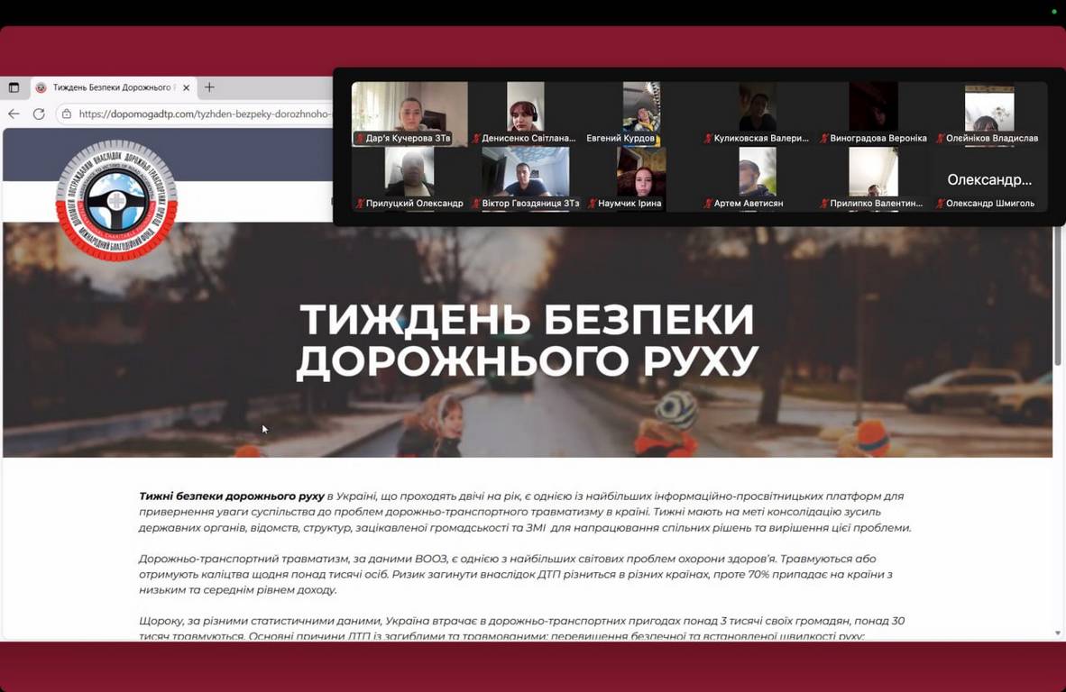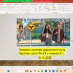 У рамках проведення Тижня безпеки дорожнього руху у групах коледжу було організовано та проведено виховні години та бесіди, спрямовані на формування у студентів відповідального ставлення до дотримання правил дорожнього руху та профілактику травматизму на дорогах.