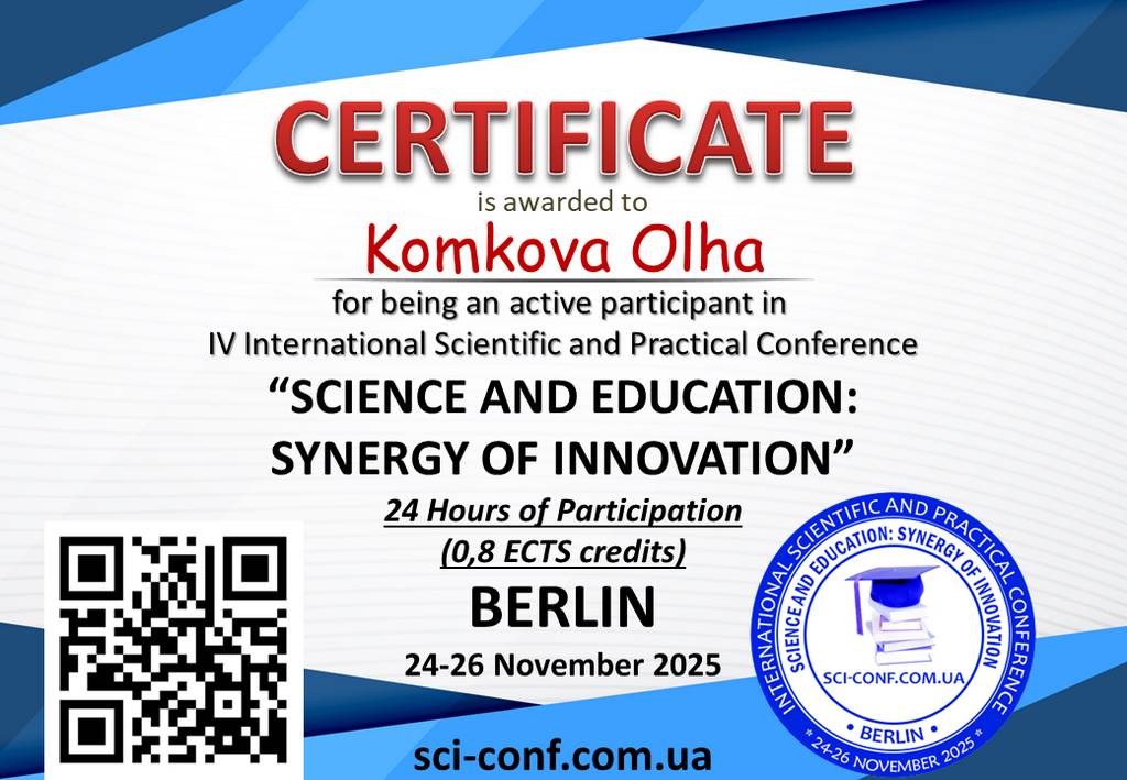 Викладачі Комкова О.А. та Бойко Г.Г., а також студент групи 3А-23 Бондар Артем взяли активну участь у Міжнародній науковій конференції, що відбулася у місті Берлін, Німеччина.
