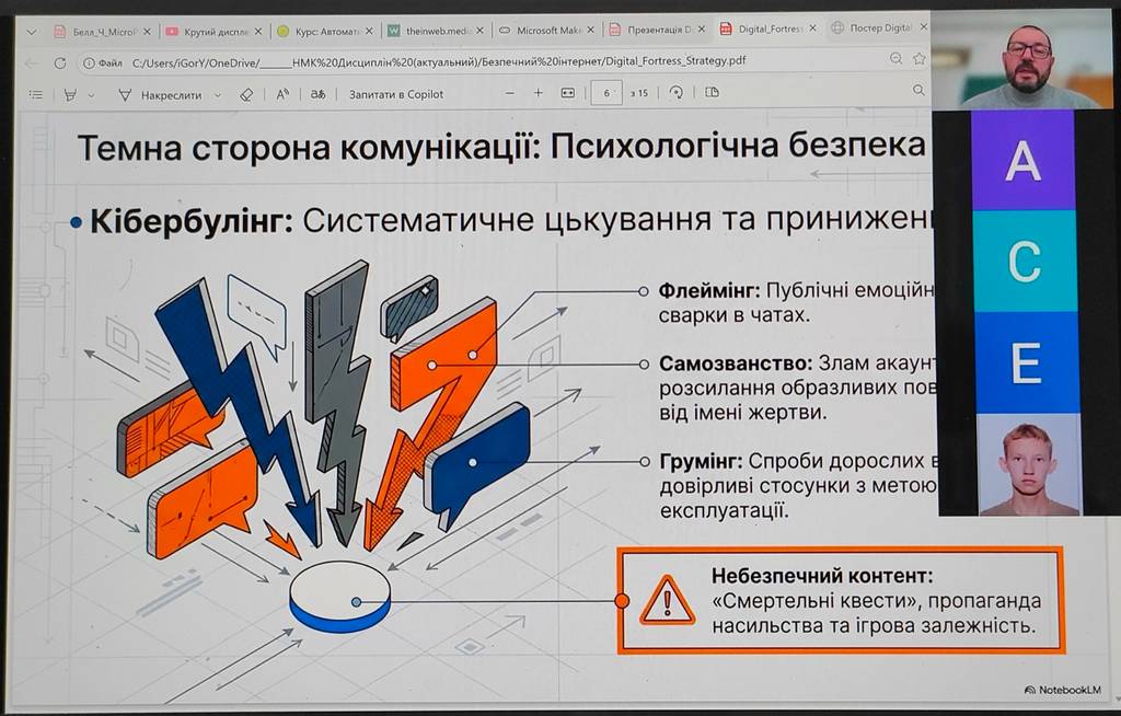 • Психологічна безпека: протидія кібербулінгу (флеймінгу, самозванству) та розпізнавання онлайн-грумінгу.