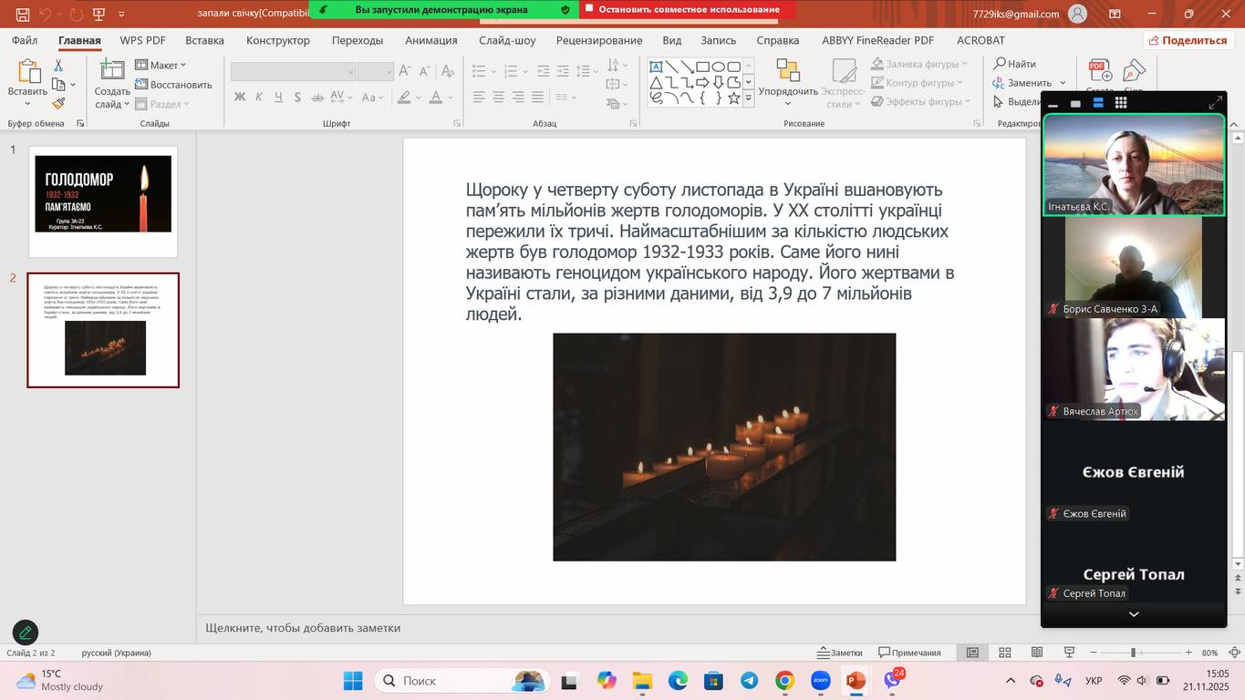 Проведені у коледжі заходи не лише сприяли поглибленню історичних знань студентів, а й допомогли кожному усвідомити масштаби трагедії та її вплив на долю українського народу. Вшанування пам’яті жертв Голодоморів об’єднує покоління, нагадуючи нам про важливість збереження правди, людської гідності та національної пам’яті.