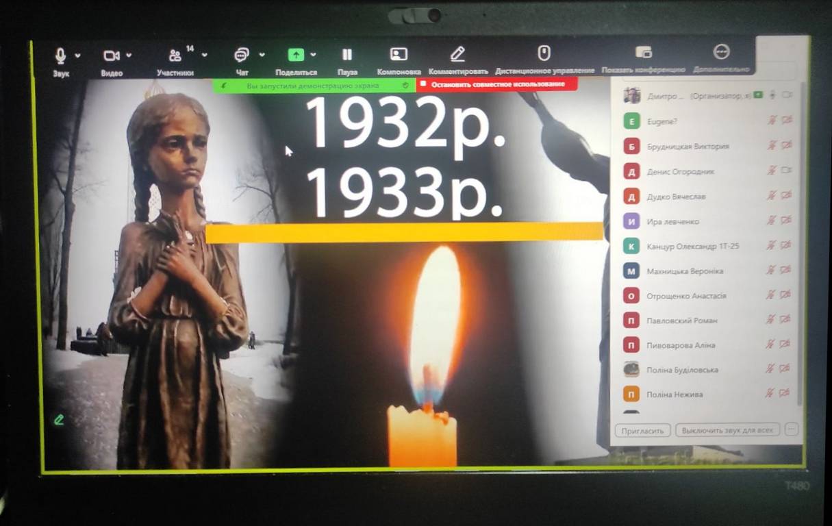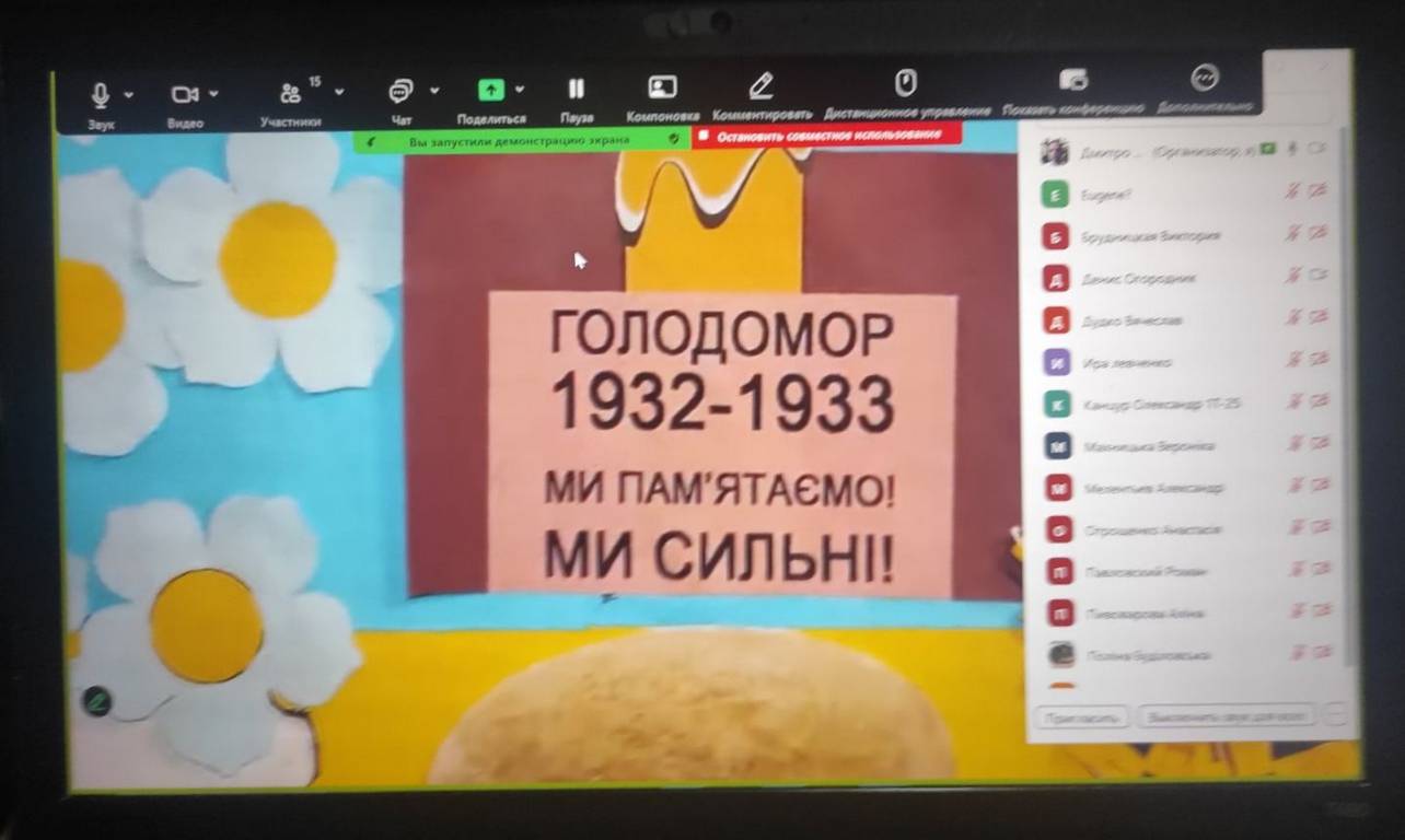Упродовж тижня у всіх групах відбулися тематичні виховні години «Голодомор, як геноцид», «Ціна одного зернятка» та «Україна пам’ятає — світ визнає». Викладачі разом зі студентами переглядали документальні матеріали, історичні відеохроніки, обговорювали свідчення очевидців та наслідки штучного голоду, спричиненого тоталітарним режимом.