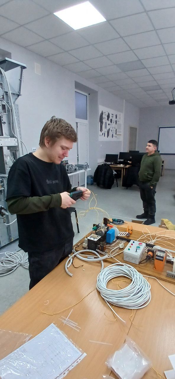 Під пильним наглядом професіонала — провідного інженера АСКВ автоматизації ТОВ «ЗЕО» Вадима Пінського — студенти:
